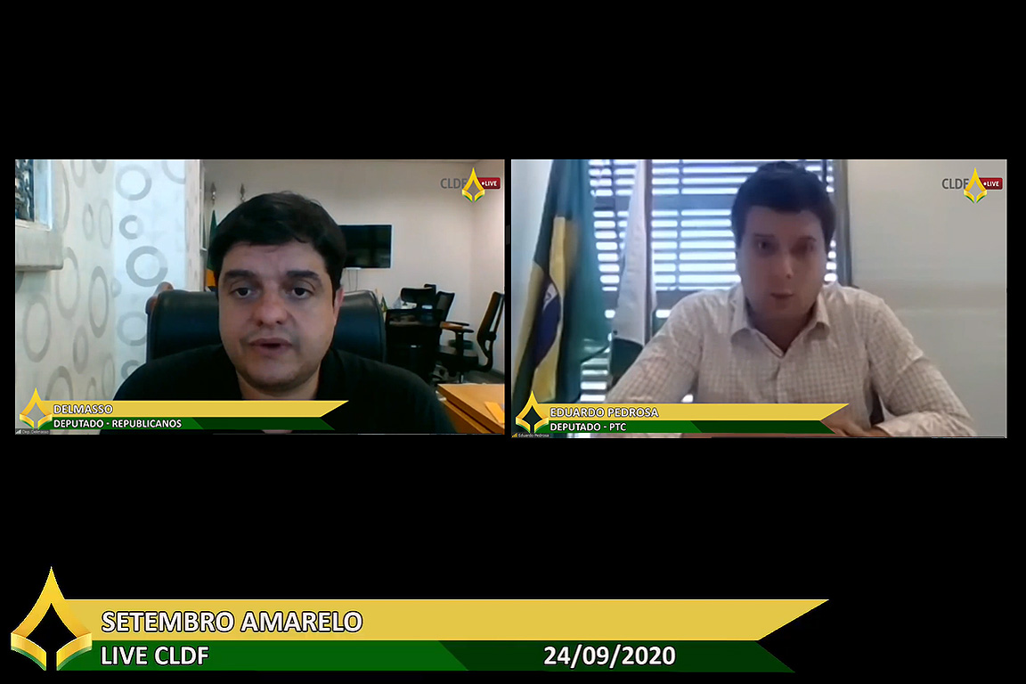 A ação do Estado e a presença da família são fatores essenciais para a prevenção ao suicídio, segundo os deputados Eduardo Pedrosa (PTC) e Delmasso (Republicanos), que trataram sobre o tema na Live CLDF desta quinta-feira (24). Ambos reconheceram que, embora espinhoso, o assunto precisa ser encarado com urgência e seriedade. O encontro atende ao pleito da Setembro Amarelo, campanha nacional, que ilumina, durante o mês de setembro, locais públicos com a cor amarela para alertar a população e estimular debates sobre o suicídio. Com participação de usuários pelo chat do canal da Casa no Youtube, o programa foi transmitido ao vivo pela TV Web CLDF.