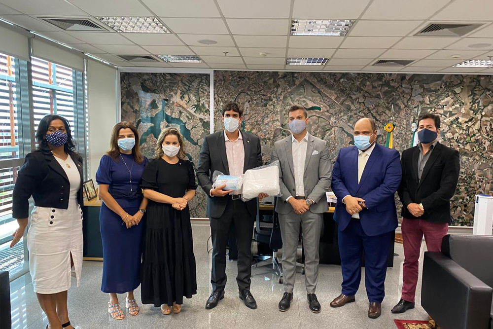 Na tarde desta quarta-feira (23), o vice-presidente da Frente Parlamentar Brasil-Brasília-China da Câmara Legislativa do Distrito Federal, deputado Rafael Prudente (MDB), reuniu-se com representantes do Instituto Sociocultural Brasil-China (Ibrachina) para receber a doação de quatro mil máscaras descartáveis e mil aventais.