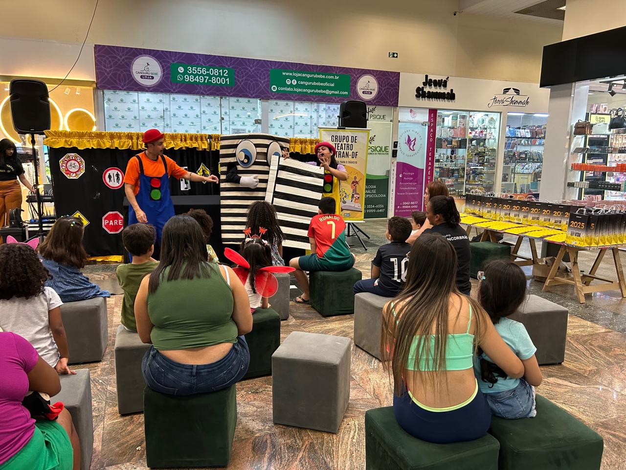 Ainda na sexta-feira, as crianças das escolas Cepi Pica-pau Branco, em Samambaia, e Centro Educativo Passionista Mãe Santa Esperança, no Riacho Fundo, puderam aprender mais sobre o comportamento correto no trânsito com as equipes de contação de histórias e de teatro do Detran-DF.