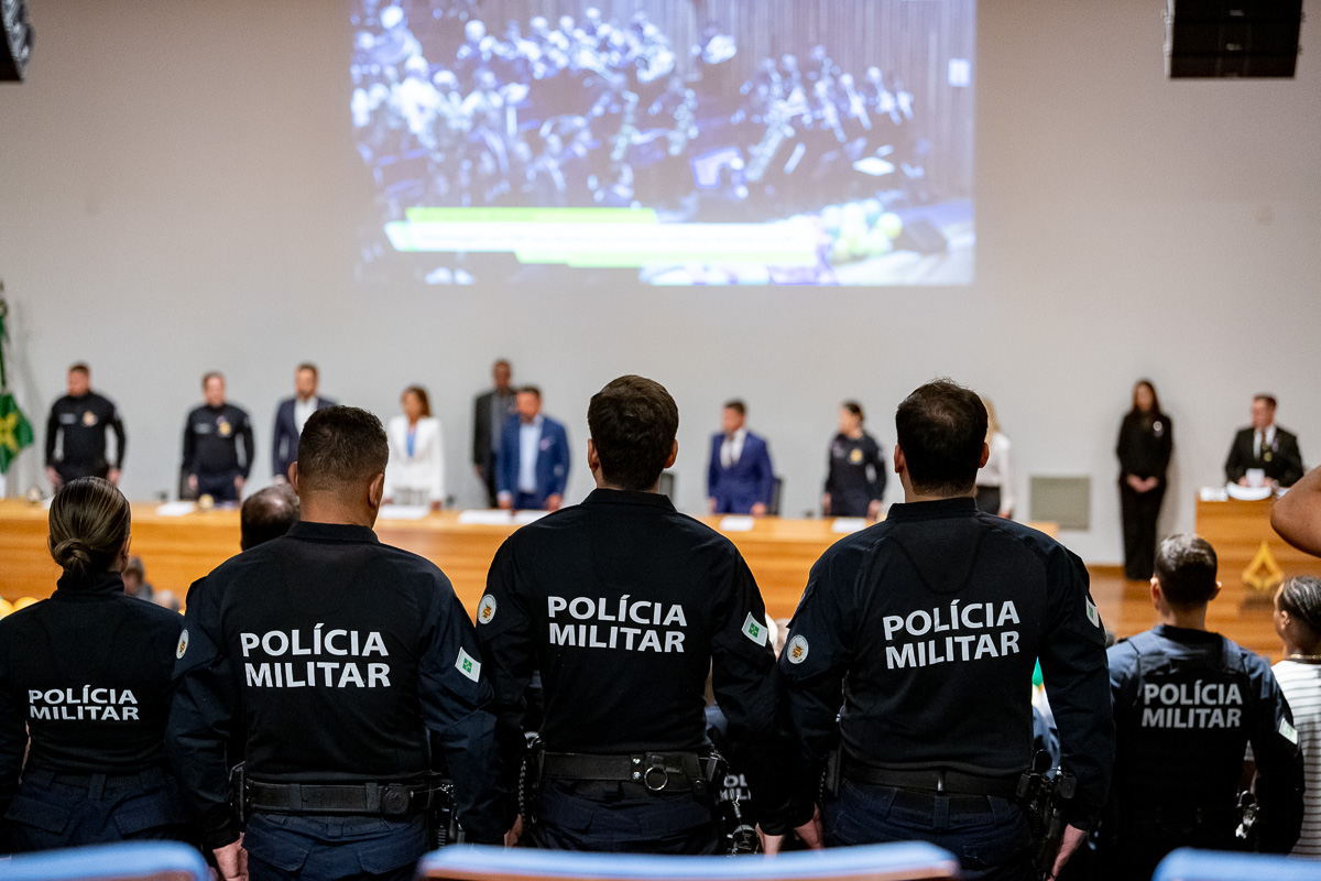 Por iniciativa do deputado Hermeto (MDB), a Câmara Legislativa do Distrito Federal homenageou nesta segunda-feira (1°) policiais militares que atendem vítimas de violência doméstica. A sessão solene aconteceu no auditório da Câmara e contou com a presença de autoridades, policiais e familiares dos homenageados.