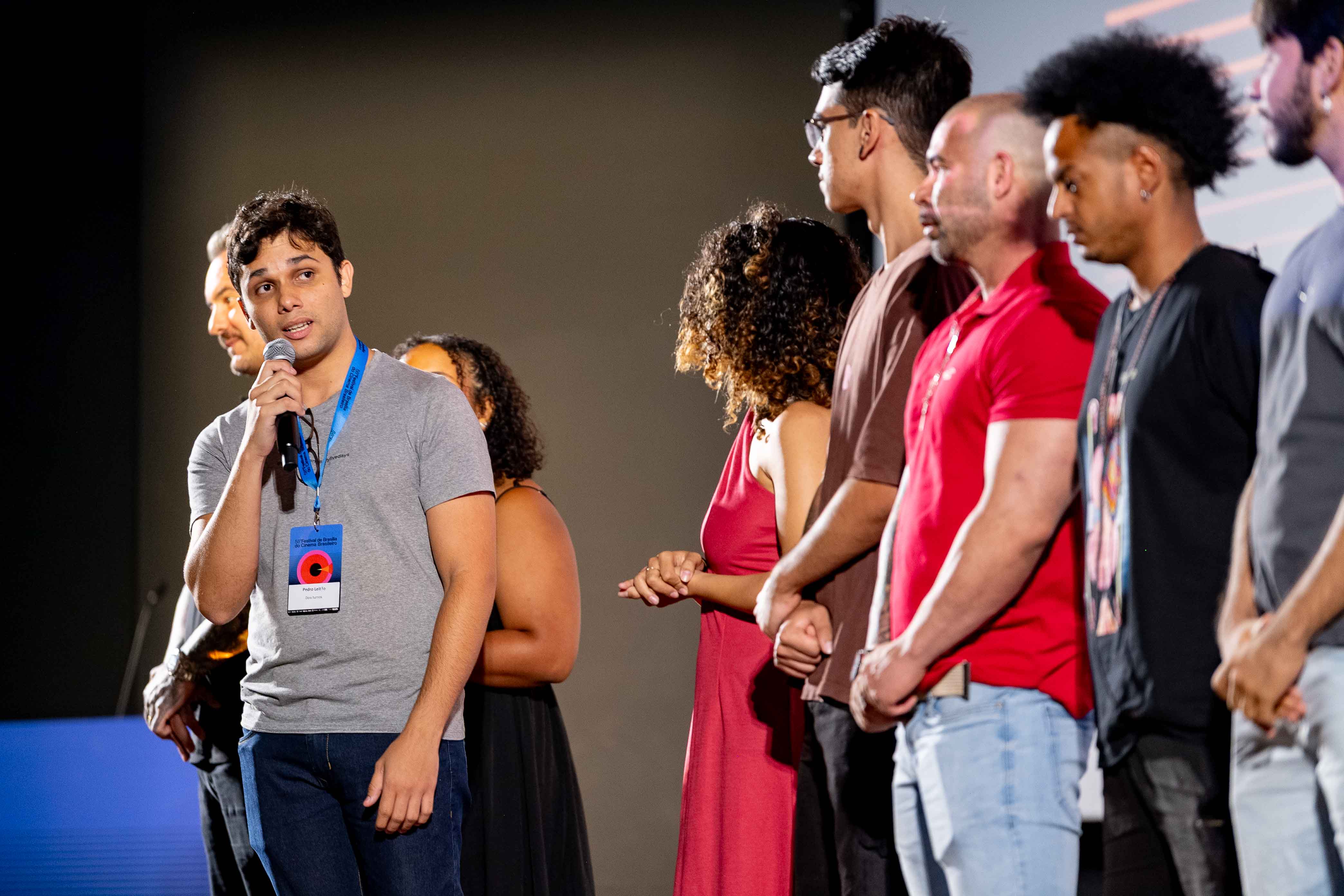 Diretor do curta-metragem ficcional, que acompanha um entregador de aplicativo no auge da pandemia, o jovem cineasta – “vindo da periferia do DF” – disse que faz filmes desde os 16 anos de idade no P Sul, bairro da Ceilândia. Ao subir ao palco para apresentar a equipe, também agradeceu ao 58º Festival de Brasília do Cinema Brasileiro e à Câmara Legislativa “por receber os realizadores e artistas com essa estrutura”.